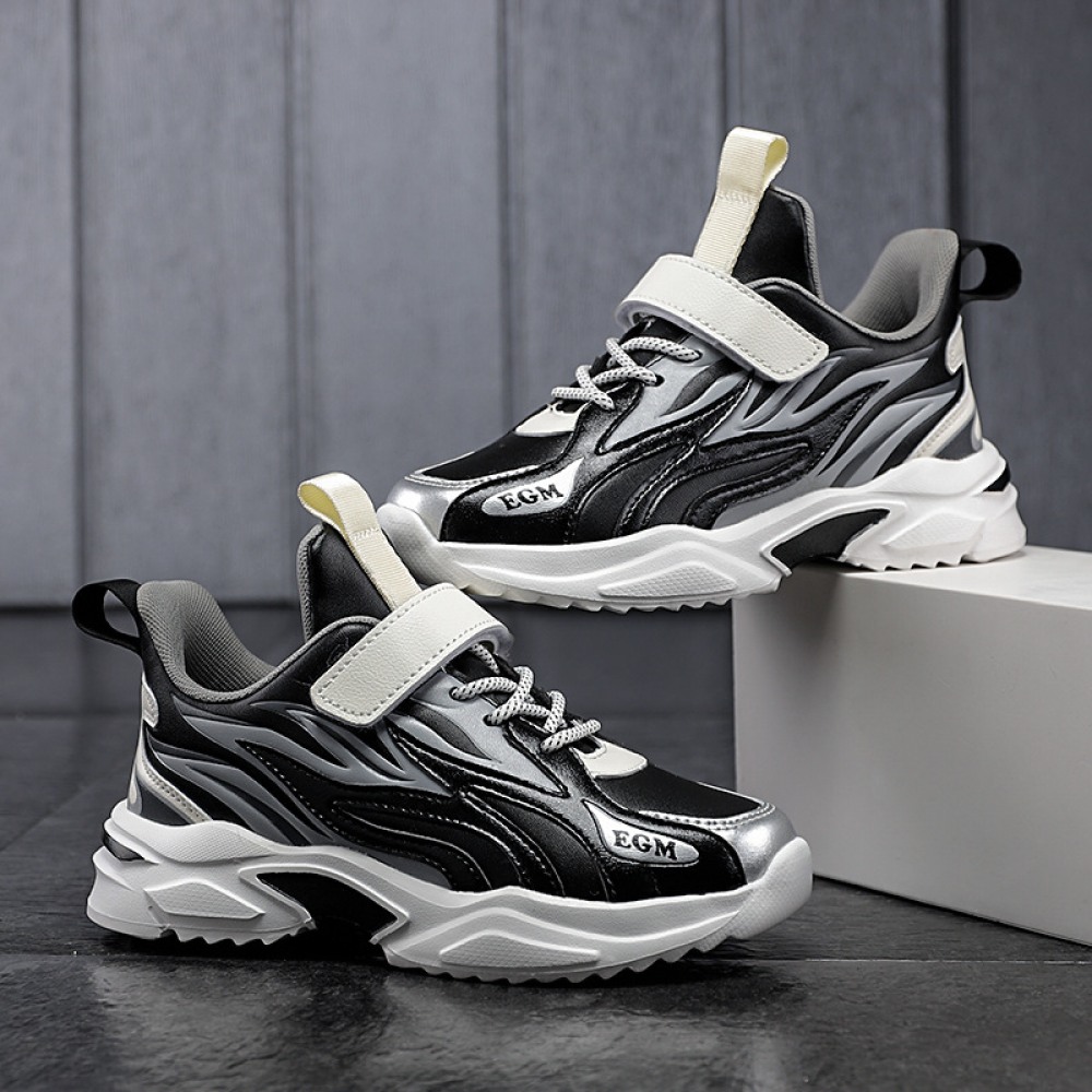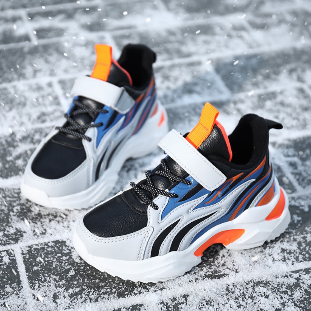 Children's Autumn and Winter New Two Cotton Plus Velvet Sports Shoes Leather Velcro Shoes