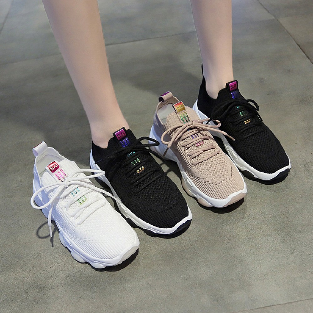 Spring And Summer New Flying Woven Women's Sports Shoes Breathable Running Sneakers