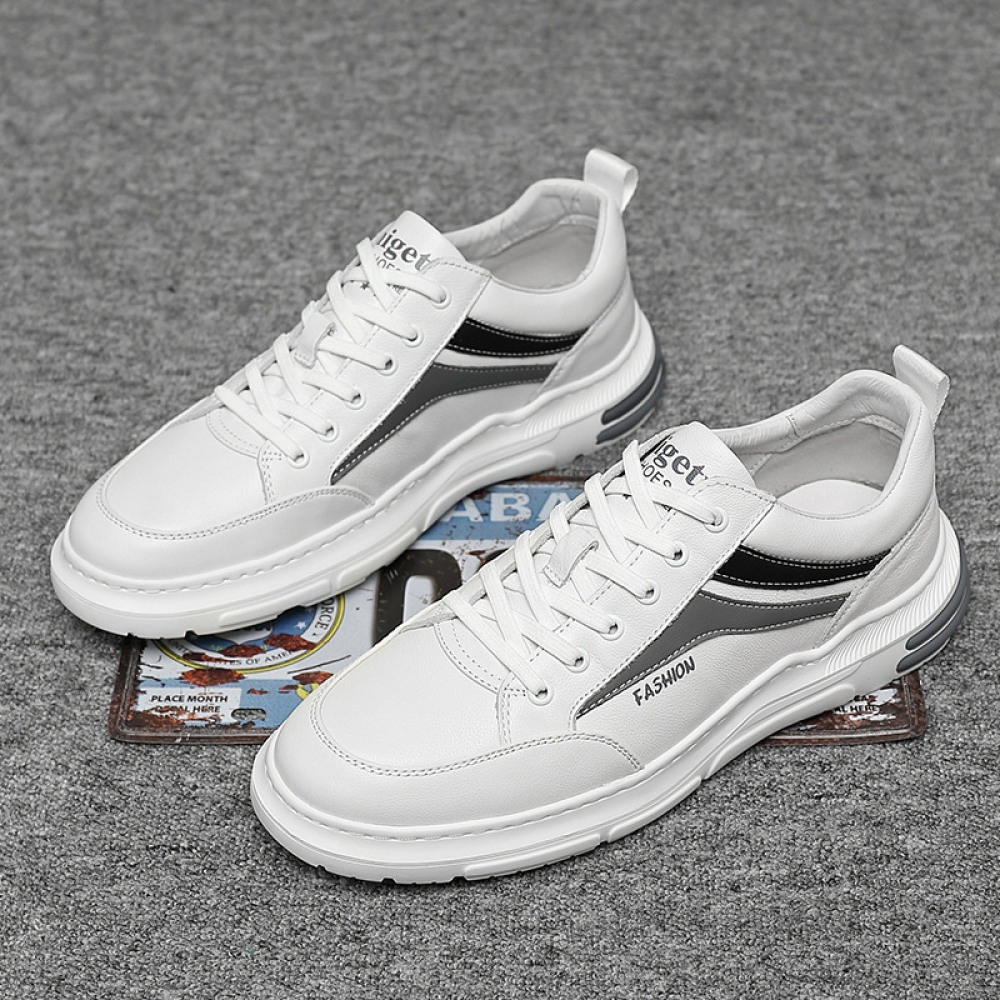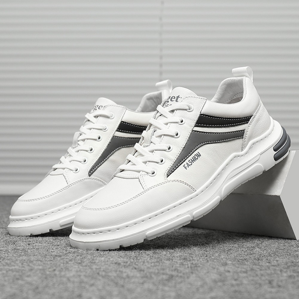 Autumn New White Men's Casual Thick-Soled Trend Sports Leather Shoes